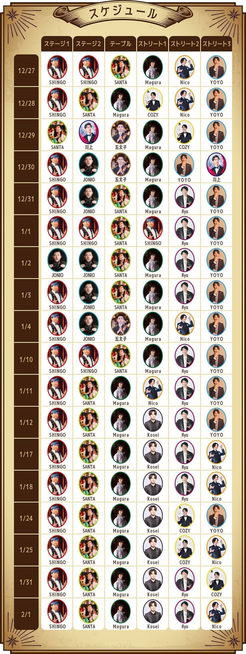 マジシャン出演スケジュール