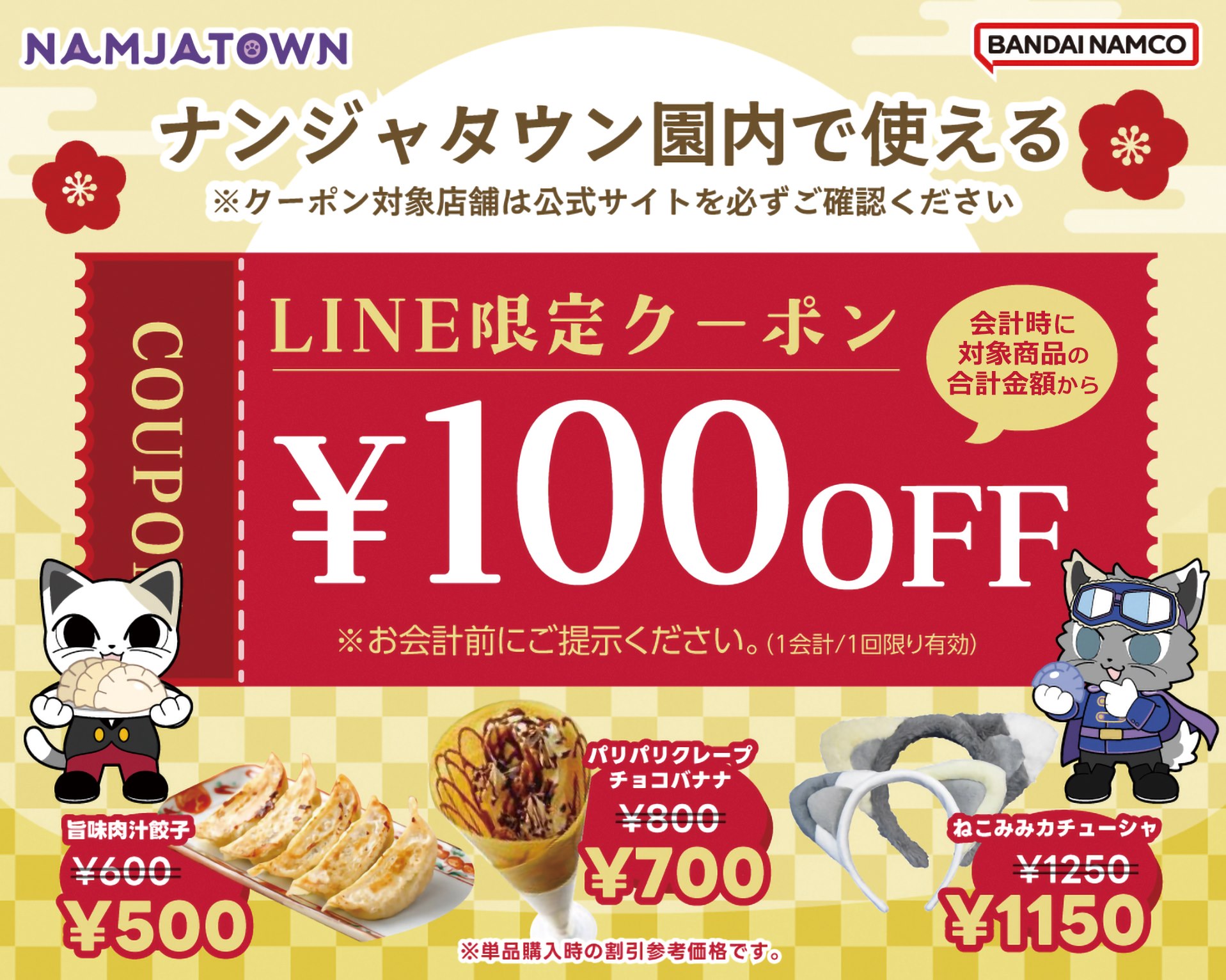 ※本クーポンは、1/31まで実施中の「ナンジャタウンの学生応援キャンペーン」「新年家族でハッピーキャンペーン」と併用してご利用いただけます。